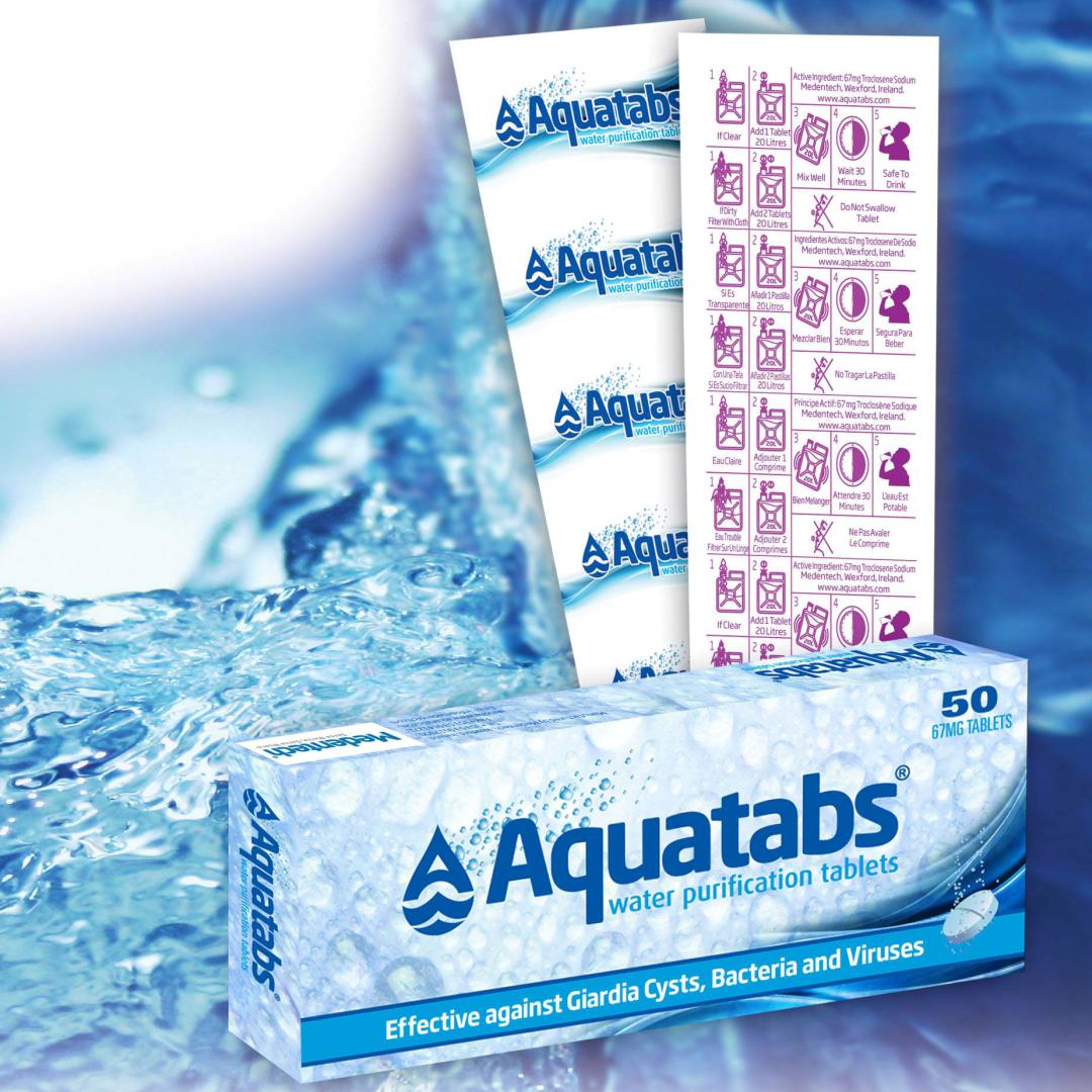 - Kills Pathogens – Aquatabs will lead to a 99.9999% reduction in bacteria, a 99.99% reduction in viruses and a 99.9% reduction in Cysts (Giardia) within 30 minutes when used in non-turbid water.